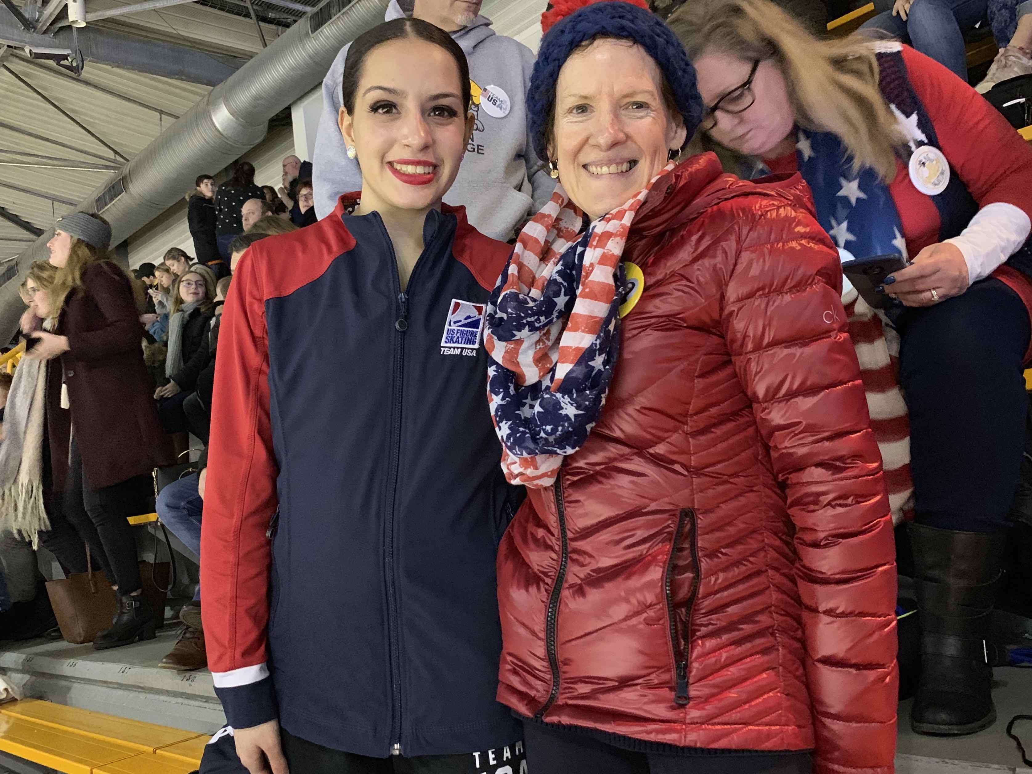 rnHaving previously watched my friends compete internationally, I was excited to experience the crowd chanting “USA… USA… USA” first hand. Before getting onto the ice, I looked up at the USA section filled with American flags and red, white, and blue clothes. In the corner of my eye, I spotted my parents excitedly waving to me. Not only has it been a dream of mine to live this moment, but for them as well since they were the first ones to tie my skates. Stepping onto the ice, I could feel the support from teammates, my friends, and family watching via live stream, and everyone else in the crowd regardless of who they were cheering for.