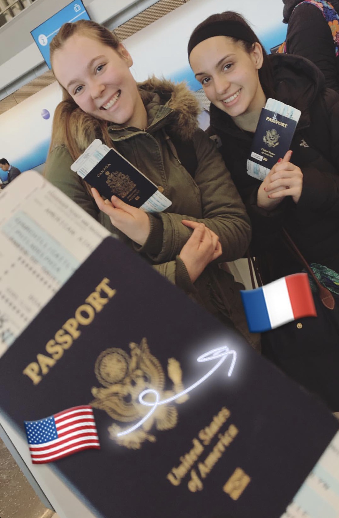 <p>From the United States to France... Tara Tahil (right) crossed the Atlantic Ocean to compete with her team Adrian College Varsity. / Credits: Tara Tahil</p>